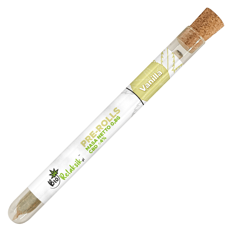 PRE-ROLLS VANILLA 0,8g Pre-Rolls VANILLA to rozkruszone kwiaty konopi odmiany VANILLA z ekologicznych upraw, owinięte niewybielaną bibułką renomowanej firmy RAW. Odmiana o waniliowym aromacie. Zawartość CBD: ≤4% FULL SPECTRUM pozwala na dostarczanie organizmowi kannabidiolu i innych fitoskładników. Zawartość kannabinoidów: CBD ≤4%, THC poniżej 0,2% 100% naturalny charakter i najlepsza jakość kwiatów oraz wysoki poziom flawonoidów i terpenów zapewniają niezwykłe doznania smakowe, które polubisz już od pierwszego użycia. Pre-rolls zapakowany jest do szklanej probówki z korkowym zamknięciem, dzięki któremu susz CBD zachowuje odpowiednią wilgotność. * Produkt nie jest przeznaczony do palenia ani waporyzacji |