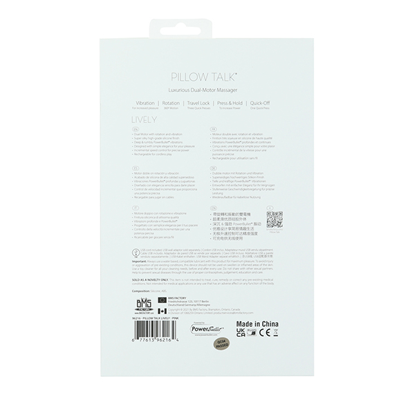 A warto, bez wątpienia, bo jeśli chodzi o walory użytkowe, to Lively stoi na najwyższym poziomie. Trzon, przyjemnej i przyjaznej wielkości, jest delikatnie poszerzony na górze, by lepiej dosięgnąć do punktu G. Stymulator łechtaczki jest tak wyprofilowany, by mógł pieścić ją delikatnymi i szybkimi „całuskami” pyszczka, ledwie dotykając klitorisu. Albo też mocniej, bardziej stanowczo, za pomocą wybrzuszenia na wypustce.