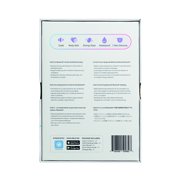 Hush 2 to korek analny sterowany za pomocą aplikacji. Dzięki swojej budowie i dopracowanej formie nadaje się równie dobrze do krótkiej zabawy, jak i długotrwałego noszenia. Kształt pocisku zgrabnie zagłębia się w pupę i pewnie trzyma na miejscu dzięki zwężonej nóżce – nawet przy mocnych wibracjach.