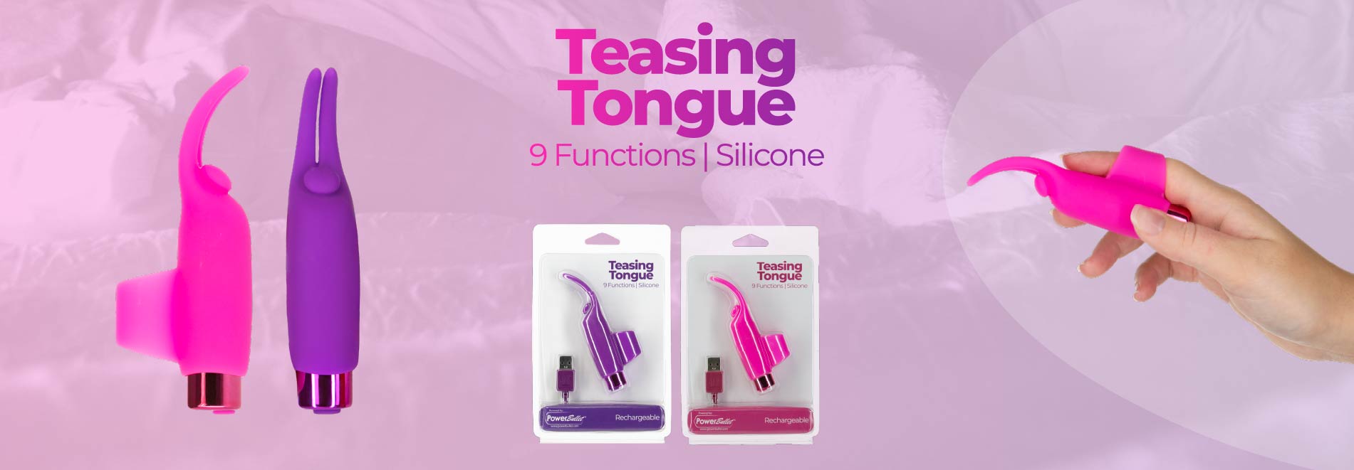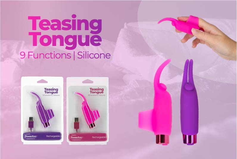 Wibrator na palec - PowerBullet Teasing Tongue With Mini Bullet 9 Functions