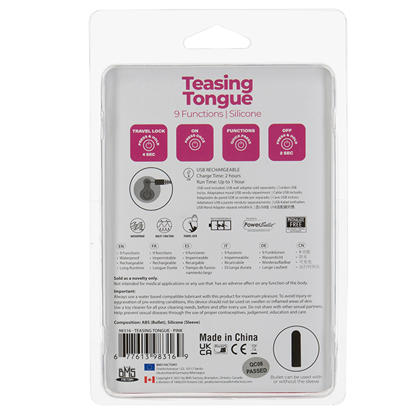 Wibrator na palec - PowerBullet Teasing Tongue With Mini Bullet 9 Functions Różowy