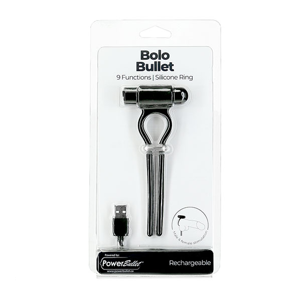 Wibrujący zacisk lasso na penisa - PowerBullet Bolo Adjustable Penis Ring with Mini 9 Function Black