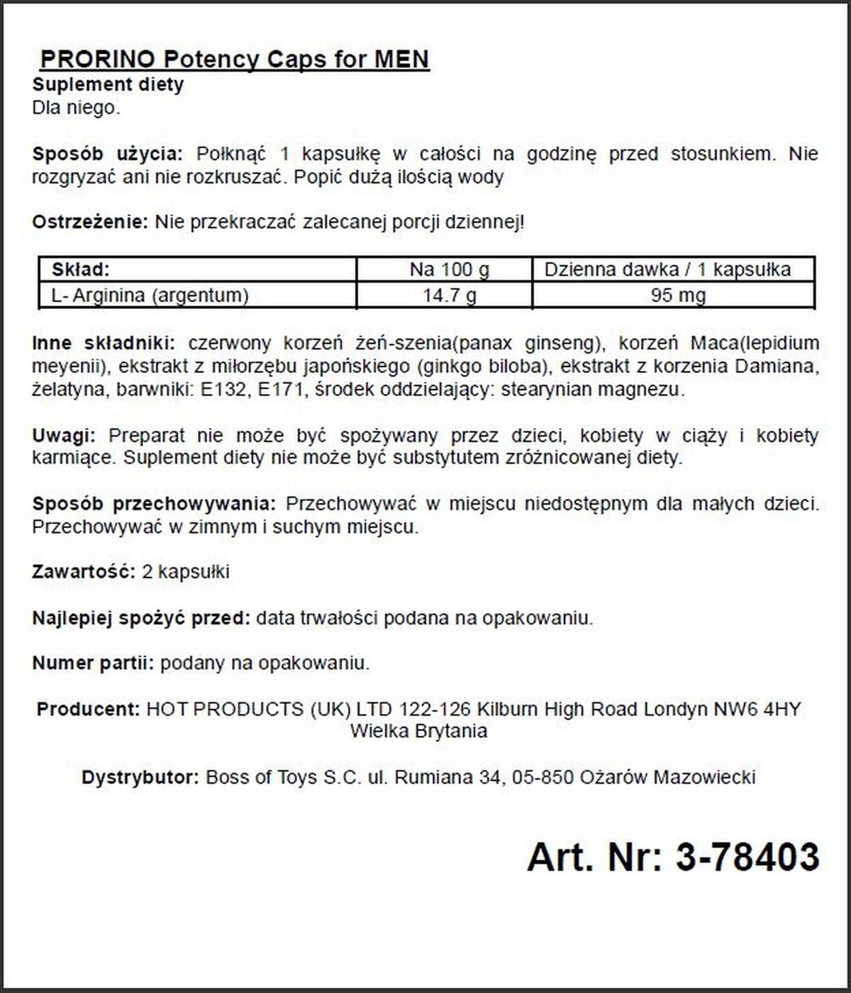Tabletki na erekcję - PRORINO MEN - 4 SkładnikI Aktywne - 1 szt.