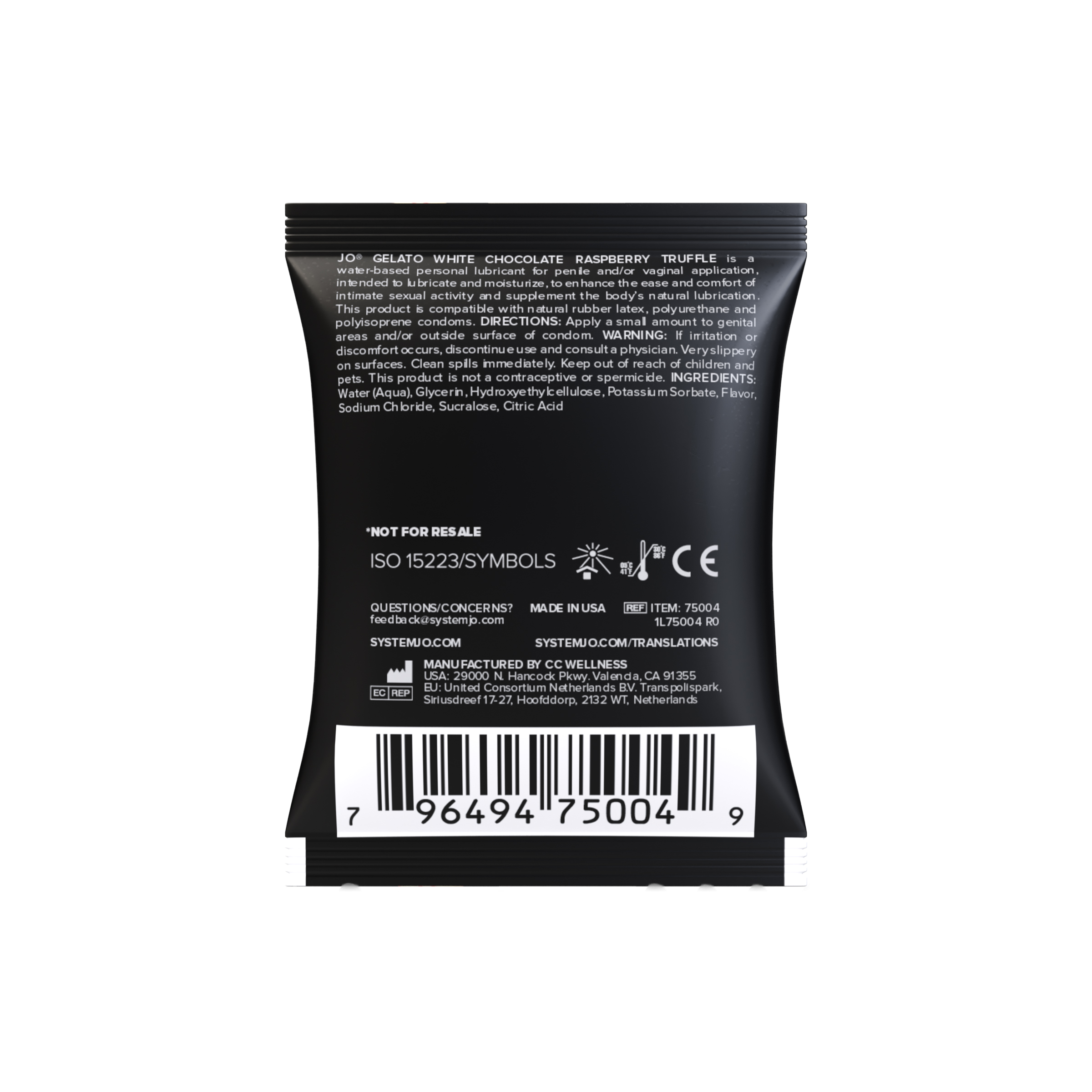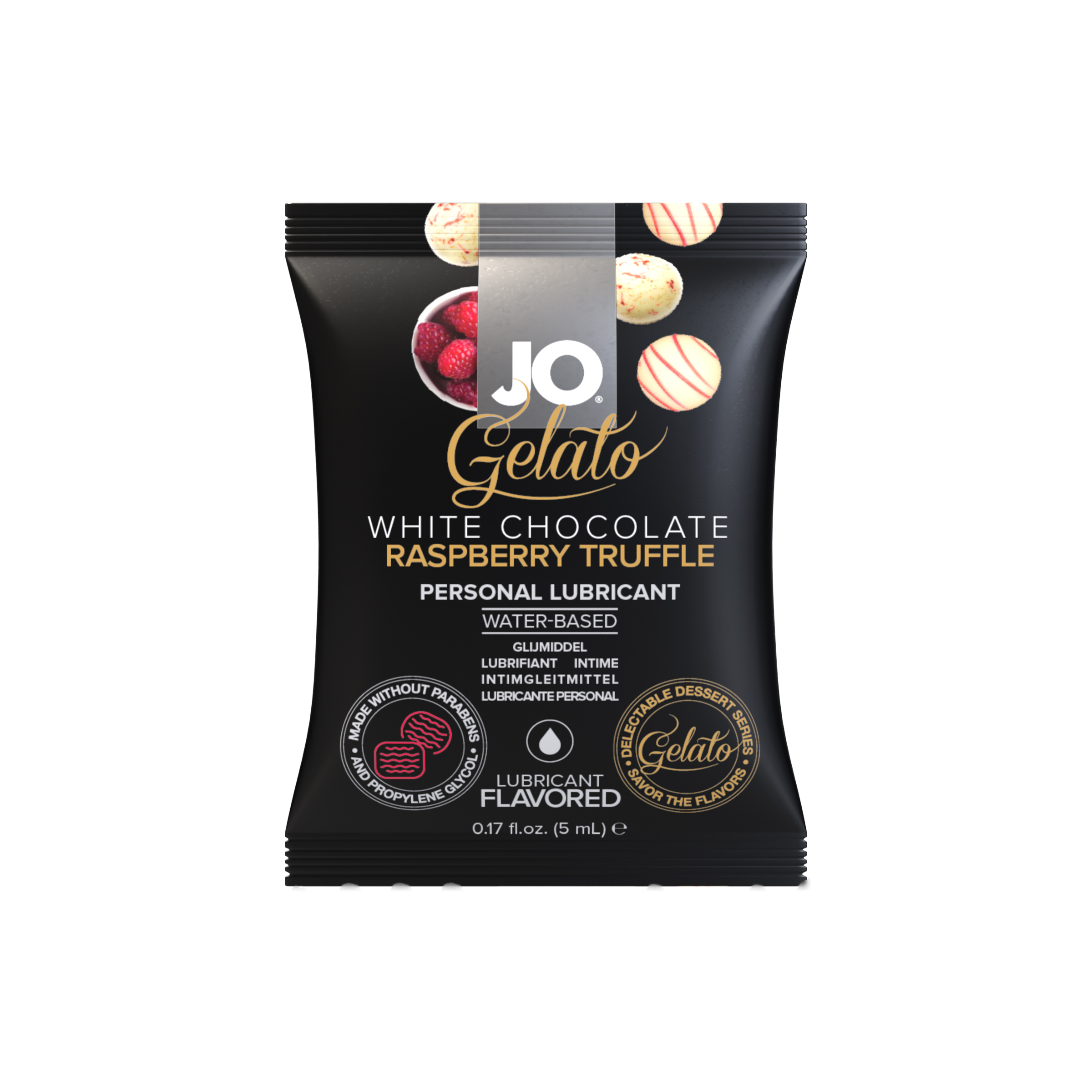 Lubrykant o smaku maliny w białej czekoladzie System JO z naszej kolekcji galateo pozwala cieszyć się figlarnymi smakami słodkich cukierków i znanych deserów.