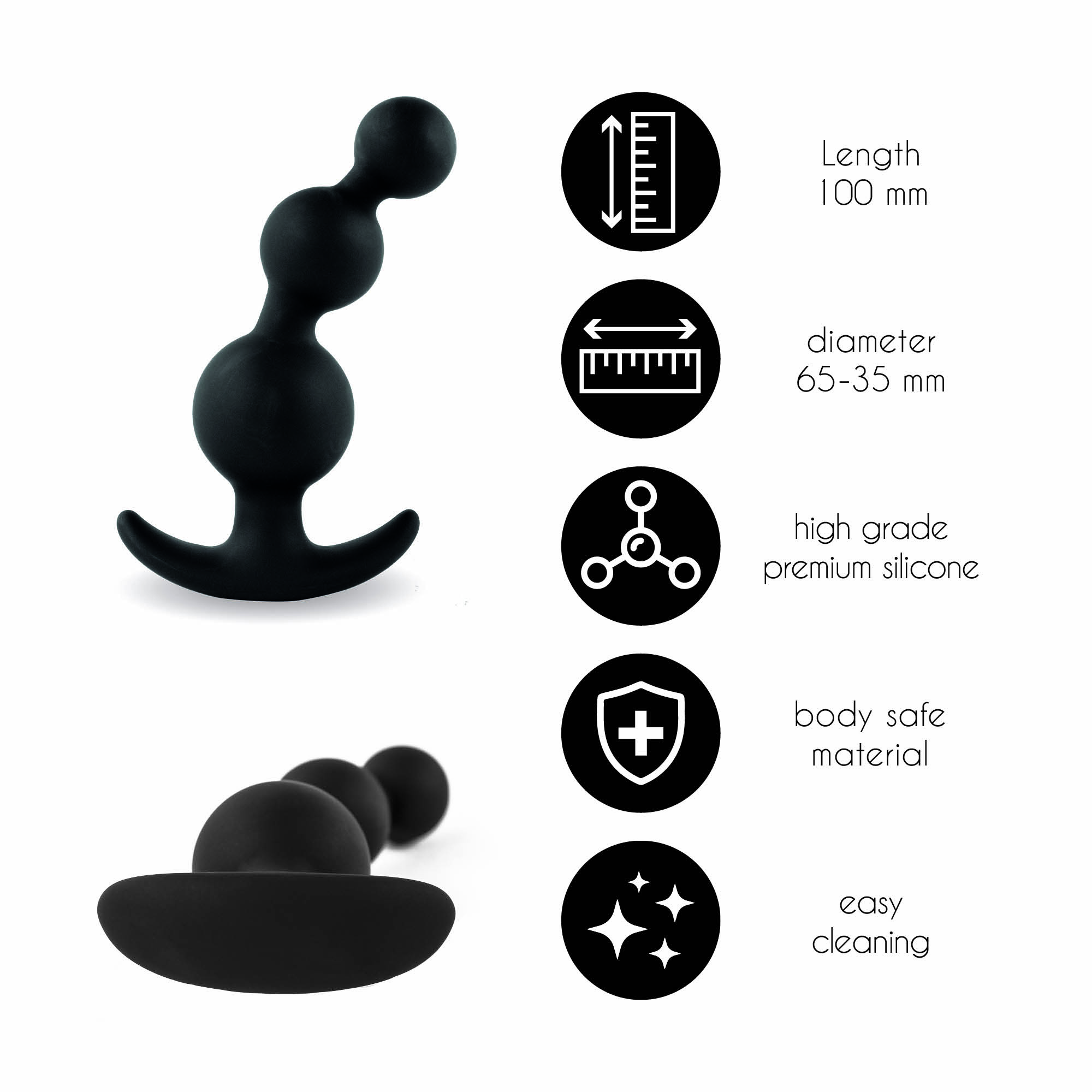 Plugz Czarny nr. 4 oferuje zabawkę w kształcie potrójnej łzy, która została zaprojektowana z myślą o łatwym wejściu i ma w sumie nieco głębszą penetrację.