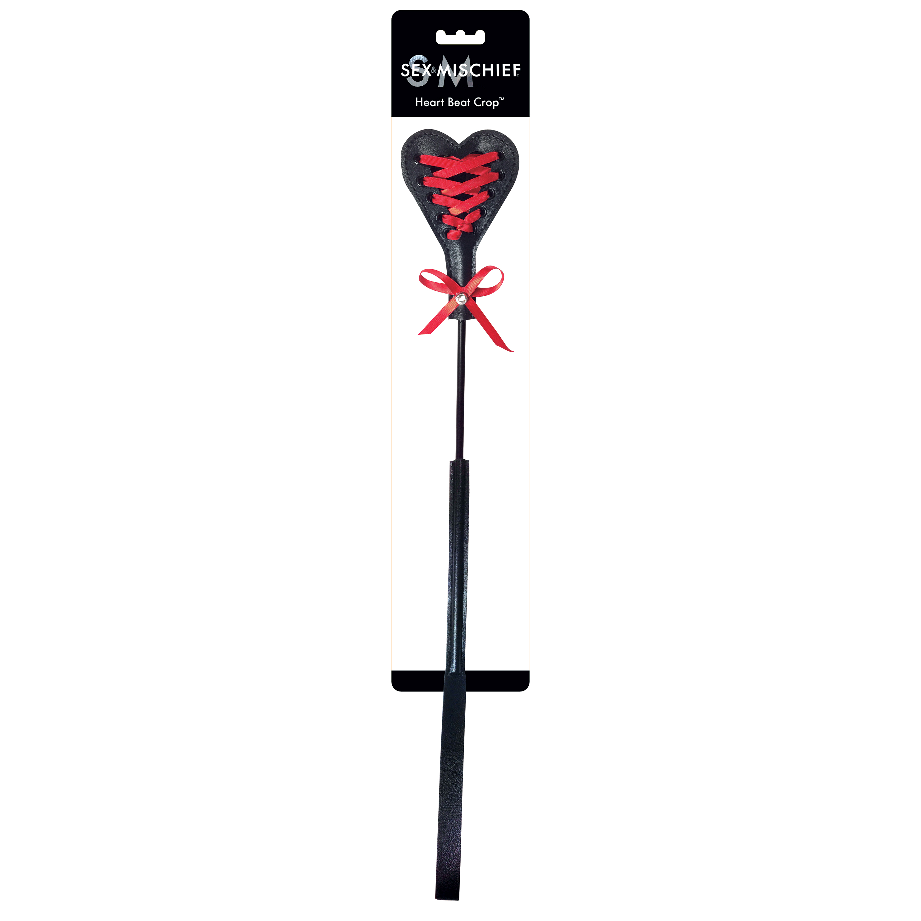 Jedna strona jest gładka do pieszczot, głaskania i klapsów, podczas gdy druga strona ma jaskrawoczerwone sznurowanie i piękny kawałek blinga dla odrobiny dodatkowego blasku.