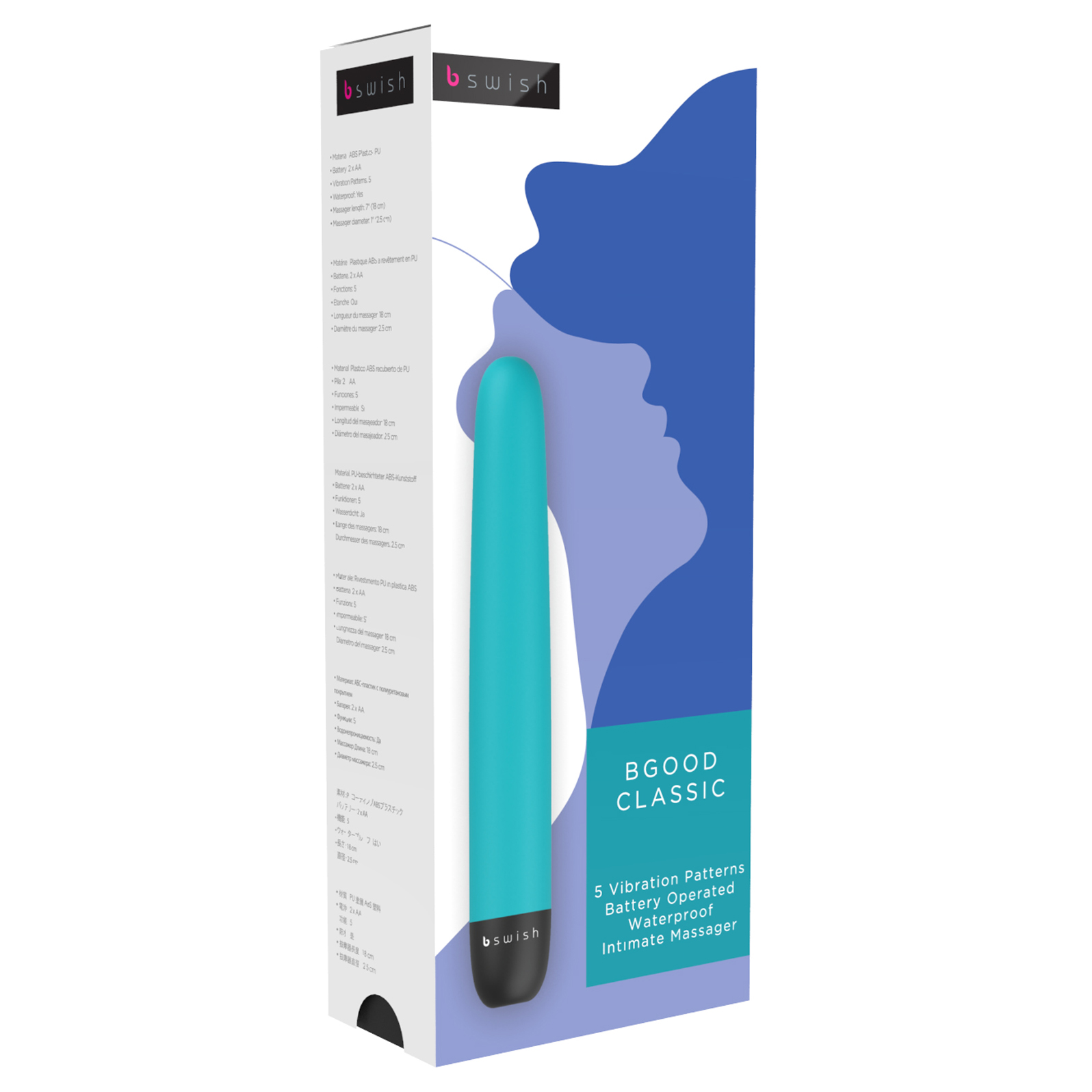 Bgood ClassicodB Swishto klasyczny masażer miejsc intymnych, utrzymany w prostej, eleganckiej estetyce. Jest wyposażony w pięć unikalnych programów wibracji – wybierz jeden z nich za pomocą pokrętła umieszczonego u spodu i przekonaj się na własnej skórze, jak wiele jest w stanie zaoferować. Baterie wystarczą na trzy godziny zabawy.