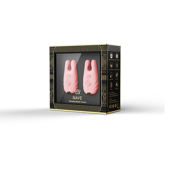 Każdy zacisk na sutki NAVE jest ukryty pod warstwą luksusowo jedwabiście gładkiego płynnego silikonu i prezentuje technologię EasyClamp firmy ZALO. Delikatnie ściśnij dolną część NAVE, aby otworzyć zacisk i przymocuj go do sutków i innych erogennych części ciała. NAVE jest również wyposażony w dodatkowe końcówki zacisków, aby dopasować różne rozmiary smoczków. Jedna z opcji rozmiaru końcówki jest odpowiednia dla sutków o średnicy 8-15 mm i może być używana również przez osoby, które rodziły. Płaskie wnętrze zacisku wygodnie zabezpiecza brodawkę. Druga opcja rozmiaru pasuje do sutków o średnicy 5-10 mm i posiada wnętrze z punktami tarcia, które potęgują doznania stymulujące.