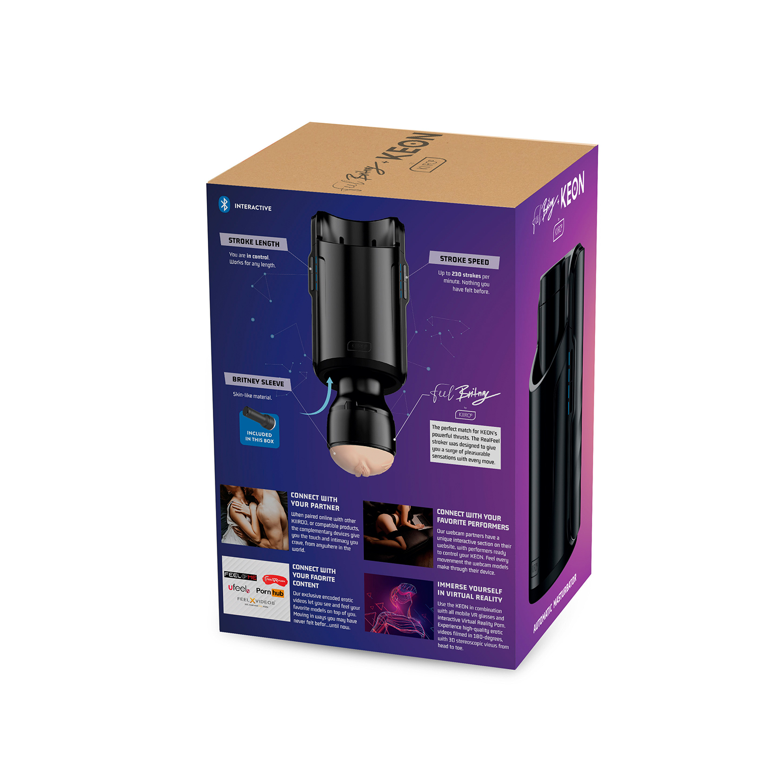 Feel Britney Amber Stroker został zaprojektowany do użytku z Keonem, flagowym masturbatorem Kiiroos, który przybliży fanów bardziej niż kiedykolwiek wcześniej do poczucia, jak to jest być z Britney Amber. Keon by Kiiroo ustanowił nowy standard interaktywnej przyjemności dla dorosłych; najmądrzejszy interaktywny masturbator na rynku