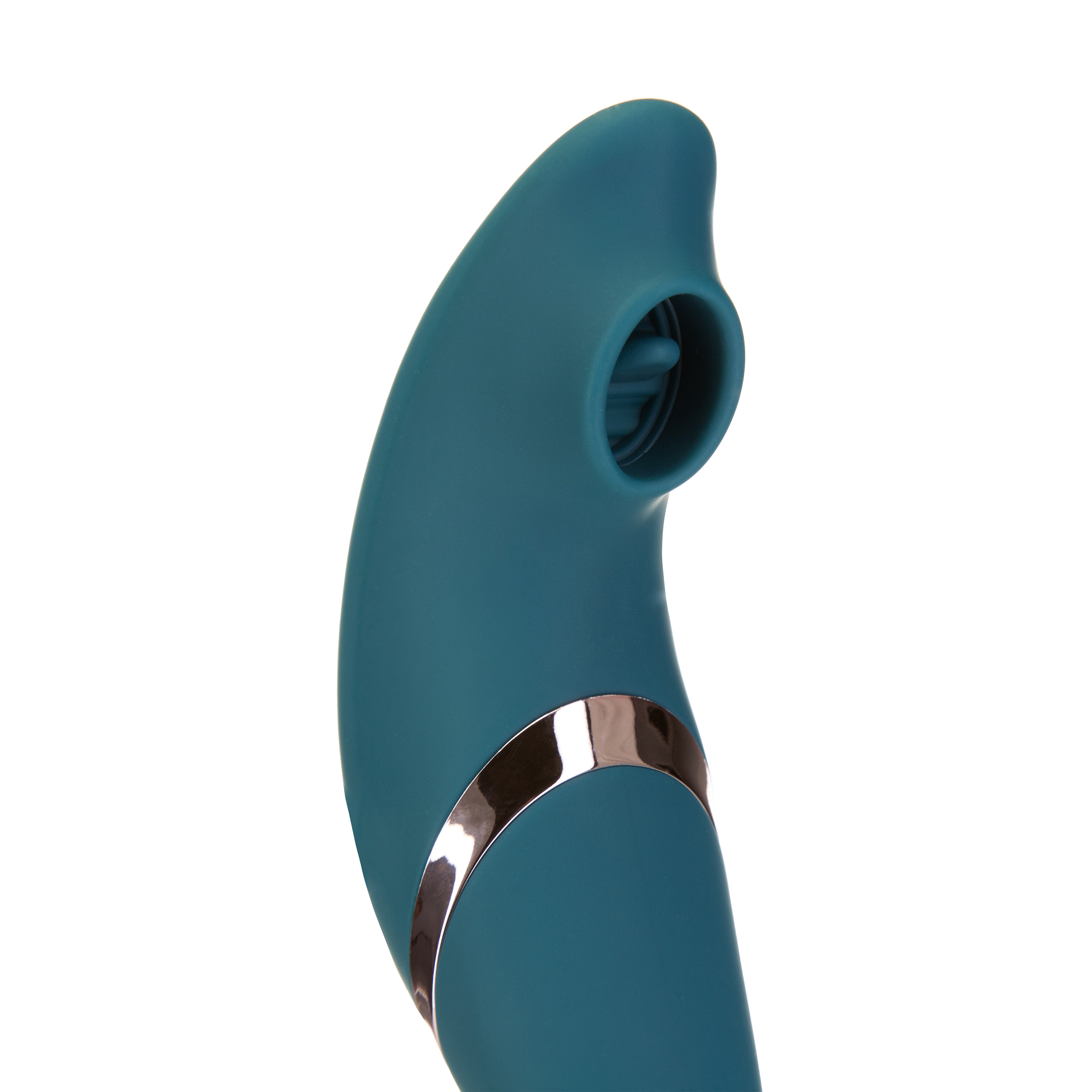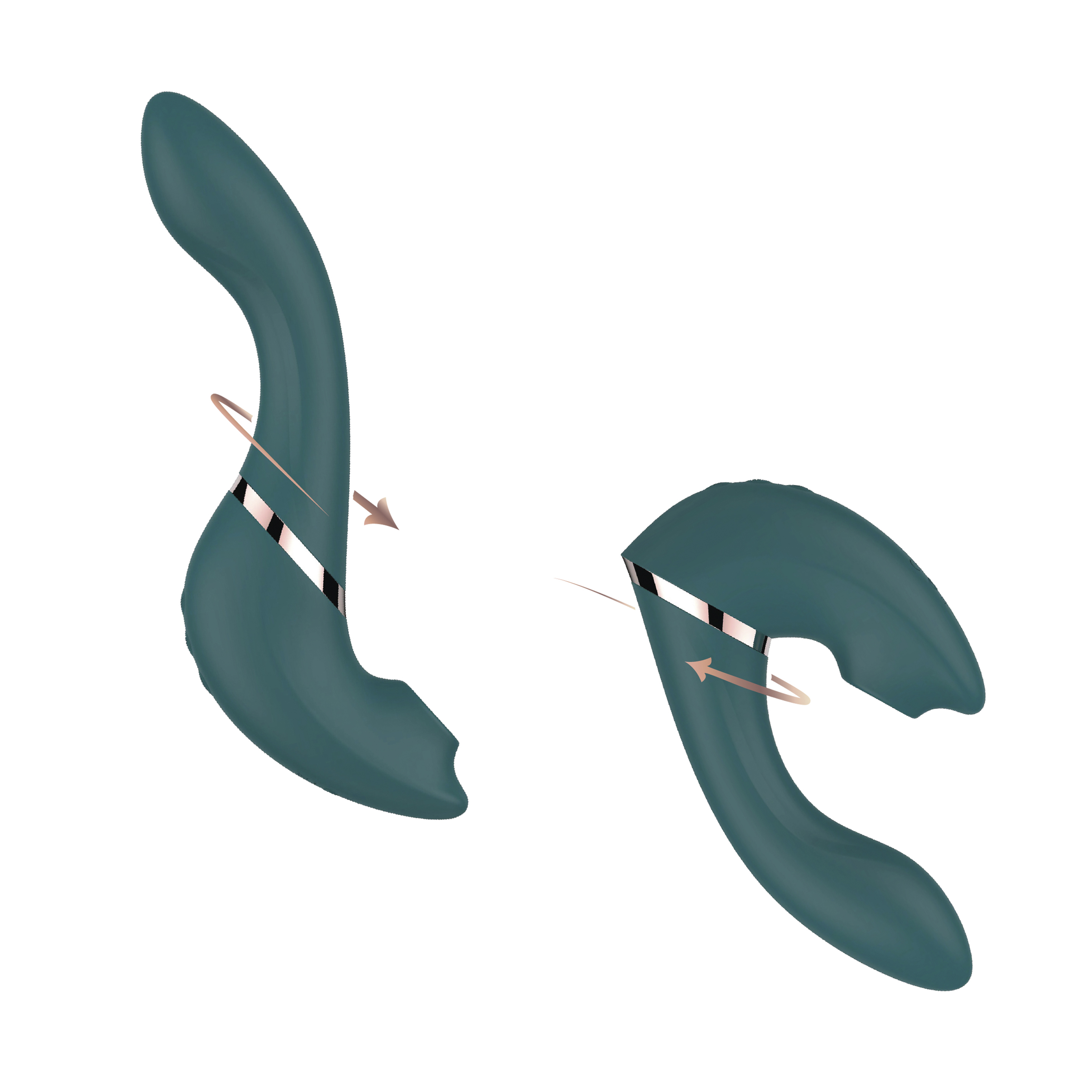 Doświadcz niesamowitej przyjemności z obu końców tego luksusowego wibratora. Na jednym końcu znajduje się klasyczna wibrująca różdżka z 5 różnymi funkcjami wibracji, w tym 3 prędkościami i 2 wzorami. Elegancki, seksownie zakrzywiony korpus i bulwiasta końcówka zostały fachowo zaprojektowane, aby trafiać w punkt G i dostarczać silnie falujące wibracje dokładnie tam, gdzie ich potrzebujesz. Na drugim końcu znajduje się stymulator łechtaczki, który ma zarówno zasysanie powietrza, jak i trzepoczący język, z których każdy ma 5 własnych funkcji. Pozbądź się wielu zabawek i zastąp je jedną magiczną różdżką od Swan!