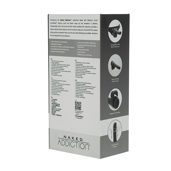 Poznaj tajemniczą soczystość Czarny. Nasz najnowszy, najdzikszy i najciemniejszy dong w naszej linii Naked Addiction. Ten potężny, jednoczesny ruch o przekątnej 8,6 cala jest wykonany z utwardzanego platyną silikonu IncrediFeel™, który jest niewiarygodnie miękki w dotyku, a jednocześnie mocny w razie potrzeby, a dzięki wysoce realistycznej teksturze nie będziesz w stanie oderwać rąk.
