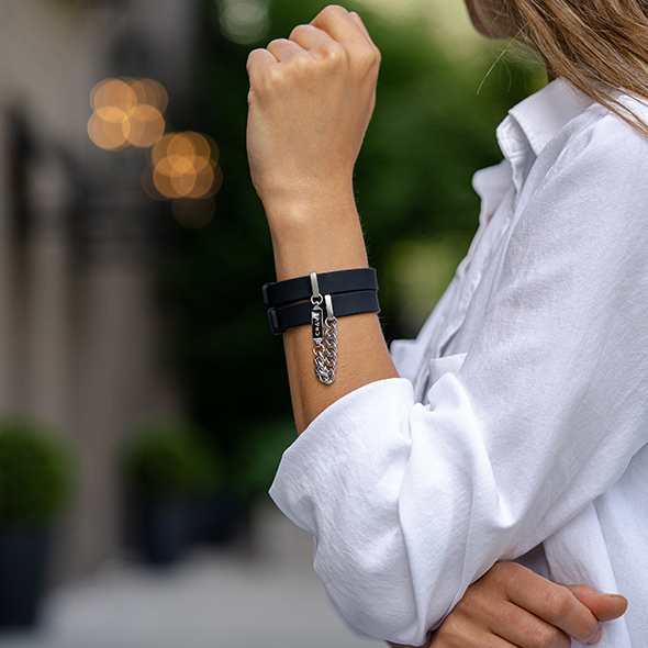 Crave - Dyskretne Mankiety Na Nadgarstki Jak Bransoletka ID Cuffs Czarno-Srebrne