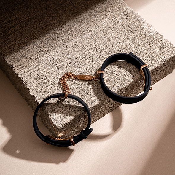 Crave - Dyskretne Mankiety Na Nadgarstki Jak Bransoletka ID Cuffs Czarno-RóżowoZłotym