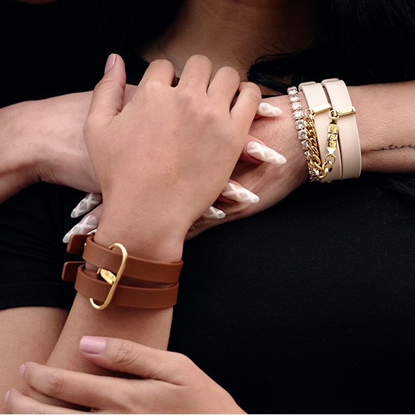 Noś je w miejscach publicznych i prywatnych: przeznaczone do noszenia ułożone razem jako wyrazista biżuteria lub noszone na każdym nadgarstku w celu intymnej zabawy.
