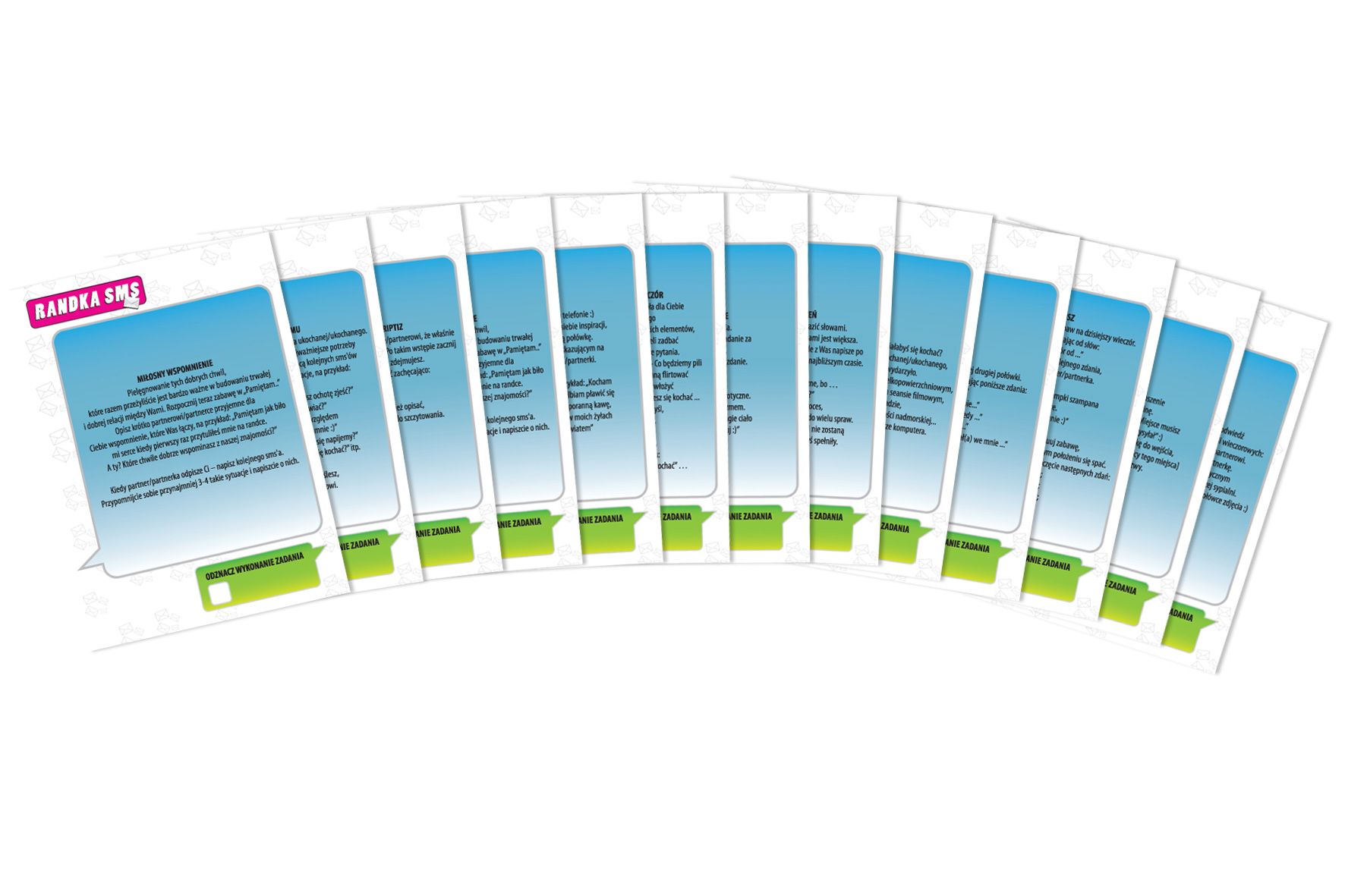 Randka SMS to miłosna gra o erotycznym zabarwieniu rozgrywana między Wami na odległość. 12 zadań, które wykonujecie przy użyciu telefonu komórkowego, tableta, komputera - potrafią skutecznie rozbudzić Waszą wyobraźnię erotyczną. To bardzo dobry sposób na rozbudzenie miłości i pożądania na odległość, tak by spotkanie, które później nastąpi było pełne namiętności i miłości.