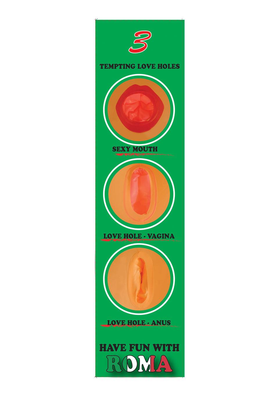 Piękna nadmuchiwana lalka miłości z czarującą nadrukowaną twarzą i stojącą pozycją, która kusi i wzbudza sensację. Jest ona naturalnych rozmiarów, posiada piersi i 3 kuszące dziurki miłosne, w których można umieścić penisa. W celu zapewnienia właściwej higieny, po każdym użyciu przemyć ciepłą wodą z mydłem i/lub zastosować środek do dezynfekcji. Stosować żel poślizgowy na bazie wody. Gadżet świetnie się sprawdzi jako śmieszny prezent na wieczór kawalerski, urodziny lub użyteczny gadżet łatwy do zabrania w każdą podróż służbową :)