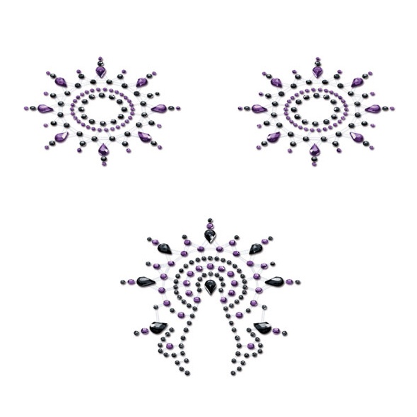 Biżuteria naklejana na piersi iłono - Petits Joujoux Gloria SetDoskonale upiększa i dodajesmakowitościkolor czarny z fioletowymNiektórzy twierdzą, żenajsmakowiciej kobieta wygląda nago, a niektórzy upierająsię, że powinna mieć na sobie chociaż skrawek ciuszka. Dlaczegoby więc nie znaleźć porozumienia?