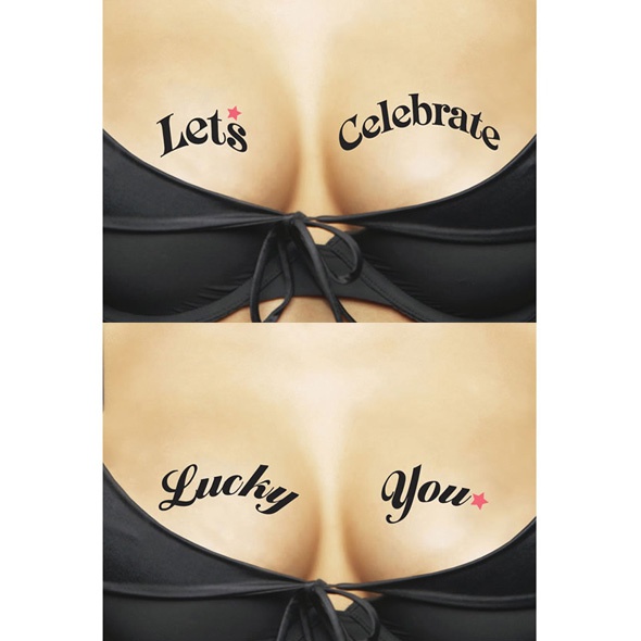 Tatuaże czasowe na dekolt -Ta-Ta-Toos Prowokuj dekoltem i przyciągajwzrok!Napisy: Lucky You – Ty szczęściarzu!Let's Celebrate - Imprezujmy